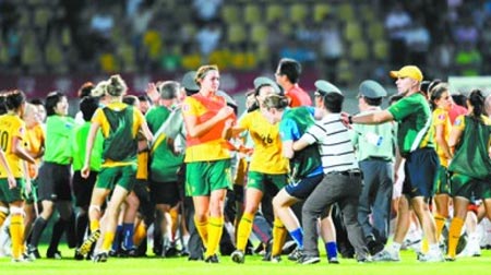 8月3日晚,中國青年女足在武漢2∶1險(xiǎn)勝澳大利亞隊(duì),亞青賽兩連勝提前小組出線,但在比賽結(jié)束后,雙方發(fā)生沖突,一名澳大利亞球員將中國球員張?jiān)酱虻梗p方替補(bǔ)球員和教練見狀全部沖到場內(nèi),一片混亂之后,經(jīng)過亞足聯(lián)官員的親自協(xié)調(diào),事件才平息。據(jù)了解,澳球員之所以“發(fā)飆”,是覺得輸?shù)煤堋案C囊”,覺得“中國隊(duì)做了裁判工作”。路透社的報(bào)道說“這起事件無疑對中國足球的聲譽(yù)又是一次打擊。 ”但事實(shí)上,算上上周日中超聯(lián)賽重慶隊(duì)主教練阿里·哈恩的“瘋狂咆哮”,連續(xù)兩次都是外國教練和外國球員在中國綠茵撒野,這里必須要問一句:憑什么?