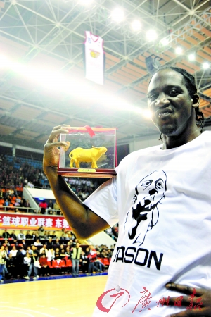 廣東宏遠東莞銀行今晚(23日)戰(zhàn)勝福建潯興的比賽,只是為了告別一個人,他叫積臣。從1998年開始,他在廣東宏遠效力了10年,是球隊奪得5個總冠軍的功臣。他的15號球衣將從俱樂部永久退役,這是給功臣最高的榮譽,積臣是CBA中第一個享有這項榮譽的外援,也是繼姚明之后的第2人。
