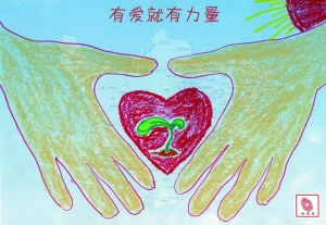 上周日,隊(duì)醫(yī)克蘭頓打電話告訴姚明傷情時(shí),后者正在忙著作畫。缺席季后賽的消息并沒有影響到姚明的畫作。在這幅題為“有愛就有力量”的蠟筆畫中,兩只大手呵護(hù)著一顆紅色的愛心,里面有新芽生出。