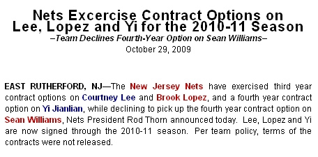 籃網(wǎng)此次執(zhí)行的是易建聯(lián)的第四年合同選項(xiàng),因?yàn)榘⒙?lián)與雄鹿簽訂了2+2的新秀合約,即前兩年的固定保障加兩年合同選項(xiàng)。所以易建聯(lián)至少會(huì)為網(wǎng)隊(duì)效力到2010-11賽季結(jié)束!