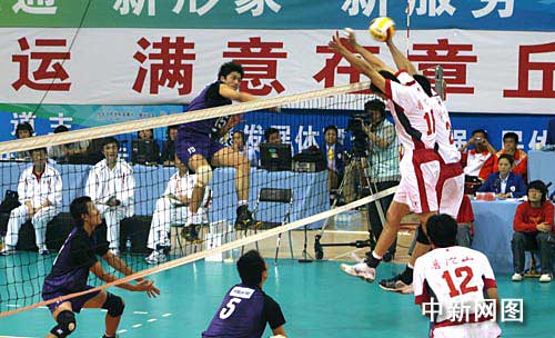 中新網(wǎng)濟南章丘10月27日電(記者 胡洪林 張譯文)正在此間進行的中國第十一屆運動會男子排球決賽冠亞軍爭奪戰(zhàn)中,對關(guān)鍵球把握出色的上海隊以3:0的絕對優(yōu)勢成功衛(wèi)冕,解放軍隊獲銀牌。