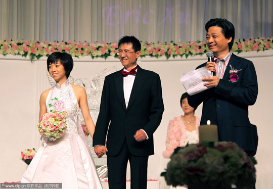 早在一年之前,張怡寧就已經(jīng)手戴訂婚鉆戒。不過對于北京小丫的另一半,諸多圈內(nèi)的朋友也不了解,隊(duì)友們大都沒有見過這位神秘人物,甚至有的在昨天的婚禮上才知道新郎叫什么名字。在婚禮上,作為中間人的李寧專門就新郎的個(gè)人情況為來賓們進(jìn)行了簡單介紹。