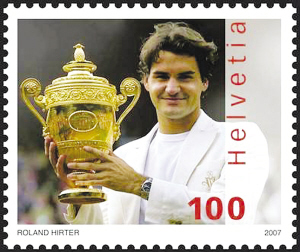 2007年4月,打破康納斯連續(xù)160周排名第一的世界紀(jì)錄之后,費德勒家鄉(xiāng)的瑞士郵政局就發(fā)行了一套以“費德勒”名字命名的郵票,嘉獎他為國家所取得的榮譽,他也因此成為首位在世就“登上”瑞士郵票的人。