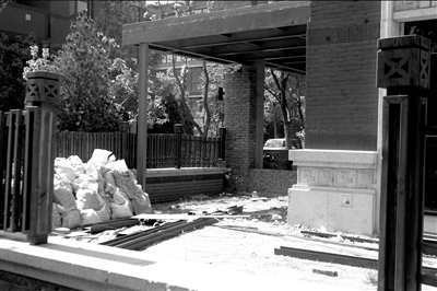 據(jù)小區(qū)物業(yè)的一名負責(zé)人介紹,2008年,前乒乓球世界冠軍劉偉在該小區(qū)尚園×號樓×單元1028室辦理入住手續(xù),并開始進行室內(nèi)裝修。今年4月,幾名工人來到1028室,開始對外墻進行整修。物業(yè)見此這種情況前去詢問,得知業(yè)主要在緊鄰樓層的小花園內(nèi)搭建一座20多平方米的二層建筑。他們立即和業(yè)主進行協(xié)商,但沒有結(jié)果。本月14日,又有一批工人過來,不聽勸阻繼續(xù)施工。