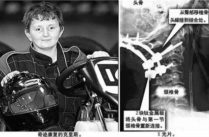 當(dāng)克里斯被送到南漢普頓綜合醫(yī)院搶救后,醫(yī)生發(fā)現(xiàn)他的傷勢(shì)非常嚴(yán)重。醫(yī)院的脊椎外科醫(yī)生達(dá)維斯回憶說:“當(dāng)時(shí),他的頭骨已經(jīng)與第一節(jié)頸椎分離,看上去好像隨時(shí)都可能從身上掉下來!