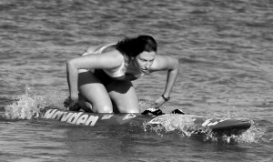 這純粹是“誤導(dǎo)”!幾乎每一分每一秒,海上交通事故、風(fēng)暴、迷霧、傷病、暴曬以及鯊魚,都可能要了這三個(gè)勇敢女人的命,因?yàn)樗齻兊墓ぞ摺獩_浪板根本沒法保證安全。這是種相當(dāng)原始的方式,三個(gè)女人每次跪著或者趴在沖浪板上用手劃2小時(shí),然后換人替班。每人每天劃4次,24小時(shí)日夜兼程,以保證每天100公里以上的進(jìn)度。沖浪板除了載人,就沒有放其他物資的空間了,所以她們只隨身帶一小包,里面只有3件東西:干衣服、照明燈和救生煙火。