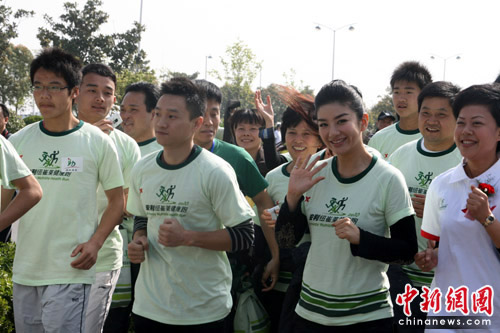 中新網(wǎng)4月21日電 奧運冠軍楊威和影視明星黃奕任“愛心大使”,帶領(lǐng)過萬安徽市民開展健康跑活動,為即將召開的第四屆全國體育大會造勢。
