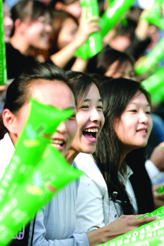 “拉拉隊(duì)志愿者并不是和外界想像的那樣一定要漂亮,關(guān)鍵是要有親和力!睆堁蠼榻B說(shuō),因?yàn)樗麄兊闹饕氊?zé)就是要帶動(dòng)現(xiàn)場(chǎng)的氣氛,這需要觀眾的認(rèn)可,如果讓一個(gè)不被觀眾接受的志愿者去引領(lǐng),那就很難達(dá)到理想的效果。為了達(dá)到這個(gè)要求,隊(duì)員們?cè)谂嘤?xùn)期間每天都要對(duì)著鏡子微笑兩個(gè)小時(shí)以上。