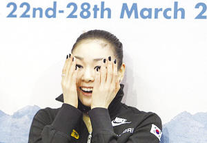 “真沒(méi)想到我的短節(jié)目會(huì)成這個(gè)樣子,”金妍兒賽后說(shuō),“我的左腳在發(fā)抖,我也不知道這是為什么。除了跳躍,其他動(dòng)作我還從來(lái)沒(méi)失手過(guò),這真是太意外了!弊鳛轫n國(guó)第一枚花樣滑冰冬奧會(huì)金牌得主,金妍兒坦言:“冬奧會(huì)之后,我有點(diǎn)害怕再次參賽。冬奧會(huì)是我的目標(biāo),而我不確定自己是否可以為了世錦賽再燃斗志!辈贿^(guò),金妍兒還是堅(jiān)強(qiáng)地表示,她要忘掉昨天自己的糟糕表現(xiàn),下面做到最好!懊魈煳視(huì)拼盡全力,因?yàn)槲业亩分具很高昂。而且,明天是這個(gè)賽季最后一次自由滑。”