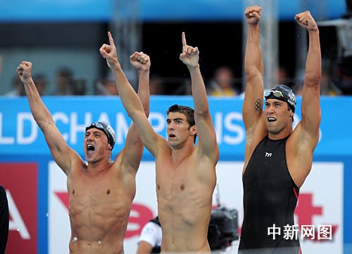 菲爾普斯站在場邊緊張地看完了比賽,當(dāng)確定是隊友幫他拿到了第十枚世錦賽金牌后,他才如釋重負(fù),與場邊的隊友擁抱慶祝。自從傳出吸食大麻,以及私生活混亂的丑聞后,這位世界泳壇第一人亟需一個世界冠軍來擺脫麻煩。這塊世錦賽金牌,來得猶如及時雨!拔蚁矚g游泳接力,因為這是團隊的力量。我對自己的表現(xiàn)失望,如果不是我,我們可能會刷新世界紀(jì)錄。這次我依靠了隊友的雙腿奪冠,但下次我會努力的!