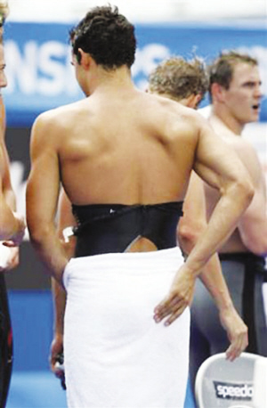 意大利時(shí)間昨天下午進(jìn)行的男子4×100米自由泳接力預(yù)賽中,伯恩斯代表美國(guó)隊(duì)參加了第三棒比賽。當(dāng)他出發(fā)起跳時(shí),泳衣臀部裂開(kāi)一條大口子,但敬業(yè)的伯恩斯仍舊堅(jiān)持游完全程,上岸后尷尬的美國(guó)小伙子迅速用一條白色大毛巾遮住了走光的臀部。最終美國(guó)代表隊(duì)以3分11秒64、預(yù)賽第四名成績(jī)晉級(jí)決賽。