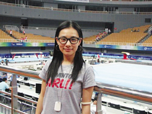 劉璇執(zhí)裁全運(yùn)體操比賽 黑框眼鏡露清純書生氣(圖)