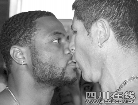 賽前,兩位火爆的拳王互相用口水戰(zhàn)為自己打氣,衛(wèi)冕拳王帕斯卡爾自信地喊道:“我不會花太長時(shí)間擊倒他,所以不要來晚了。”并揚(yáng)言要將對手布蘭科打成“血醬”。隨后,帕斯卡爾還挑釁地同布蘭科鼻對鼻的對峙,不過,由于兩人挨得太緊、過于“親密”,讓火藥味十足的對峙變成嘴對嘴的曖昧,讓人忍俊不禁。記者陳甘露