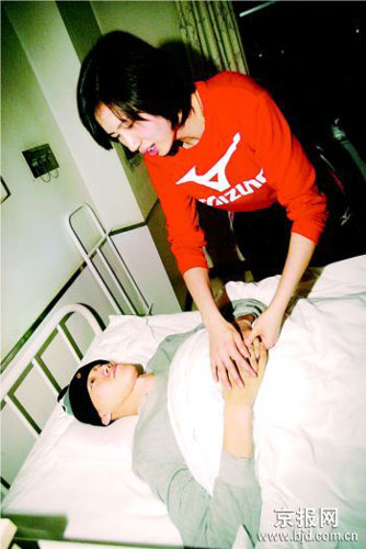 前幾天,周蘇紅從男排國家隊把湯淼的一些衣物取回時,偶然看到了湯淼在紙盒上寫的字,觸景生情,她哭著說:“我看到了他親筆寫的字,字寫得雖然不是很好看,但卻令我很感動。自從他受重傷以來,每天我訓練完了回到房間,都不知道自己該干什么,一空閑下來,我就控制不住地胡思亂想,為‘錘錘’揪著心(湯淼的小名)?晌乙部傇谙耄F(xiàn)在的醫(yī)療水平那么高,他又那么堅強,還有那么多人關心他、鼓勵他,我想湯淼重新站起來只是時間問題。實際上錘錘剛受傷的時候,對我打擊最大,現(xiàn)在那么困難的時候我倆都挺過來了,現(xiàn)在每天看到他一點點地恢復,我對他越來越有信心!