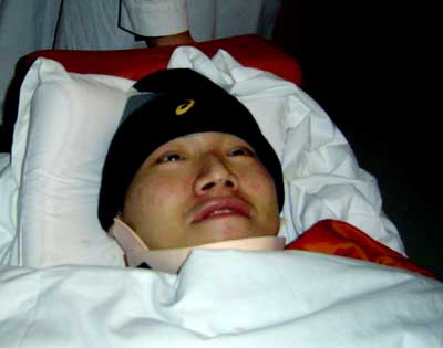 今年6月份在俄羅斯熱身活動(dòng)時(shí)頸椎受重創(chuàng)的湯淼此前一直在上海進(jìn)行治療,他前天晚上來到北京康復(fù)中心進(jìn)行治療。這也是湯淼重傷之后第一次在公眾面前亮相,目前他神志清醒,頭部能夠輕微搖動(dòng),但胸部以下仍無知覺,雙手無法用力。