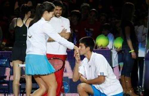 5歲的時(shí)候就認(rèn)識(shí),并且開(kāi)始一起學(xué)習(xí)網(wǎng)球,德約科維奇和伊萬(wàn)諾維奇可謂是青梅竹馬、兩小無(wú)猜,感情自然不是一般的深厚。眼見(jiàn)著如今20歲的小伊日漸出落成了一個(gè)大美女,小德也頗有些耐不住寂寞,就在澳網(wǎng)前夕,在家鄉(xiāng)貝爾格萊德的一場(chǎng)表演賽上,德約科維奇還當(dāng)眾上演了“求婚秀”——在伊萬(wàn)諾維奇面前單膝跪地,并且用哀求的眼光看著對(duì)方,最后還深情地吻了阿娜的手背,讓小美女“嚇”得不輕。