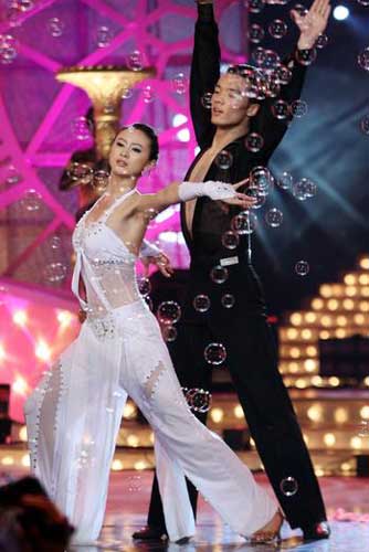 比賽一上場,戴菲菲就仿佛回到了當(dāng)年的競技場,忘情地大舞帶操,一時(shí)間滿臺(tái)飄帶,看得臺(tái)下的觀眾美不勝收,在中段經(jīng)過了男舞伴倫巴的“過渡”,最后一段戴菲菲繼續(xù)演練看家本領(lǐng),最后以一個(gè)“一字開”的標(biāo)準(zhǔn)體操動(dòng)作結(jié)束了整套舞蹈。結(jié)果幾位評審一致認(rèn)為,戴菲菲唯美的帶操完全壓過了倫巴的風(fēng)頭,正統(tǒng)國標(biāo)舞的動(dòng)作在整套舞蹈中反而是蹤影難尋,并且戴菲菲過于陶醉在自己的體操舞步中,使得男舞伴完全淪為了一片“綠葉”。好在評委們在打分上都還算客氣,最終戴菲菲以并列第三名的身份順利晉級了復(fù)賽。