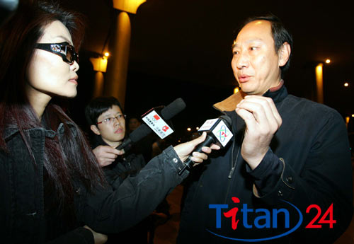 劉翔結(jié)束美國(guó)西行回國(guó),孫海平在機(jī)場(chǎng)接受采訪。
