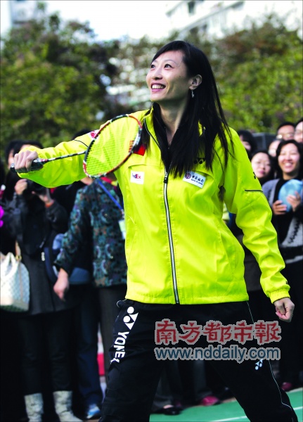 早上9時(shí)半,張寧與蔡赟、付海峰、韓晶娜便作為羽毛球世界冠軍代表出現(xiàn)在上海浦東社區(qū),參加“世界冠軍進(jìn)社區(qū)”的羽毛球推廣活動(dòng),還與社區(qū)代表打起了雙打?qū)官;顒?dòng)結(jié)束不久,午后1時(shí)半,張寧已變換了身份,坐在中國(guó)隊(duì)女單組訓(xùn)練場(chǎng)邊的教練席上正式開(kāi)始了她第一天的工作。