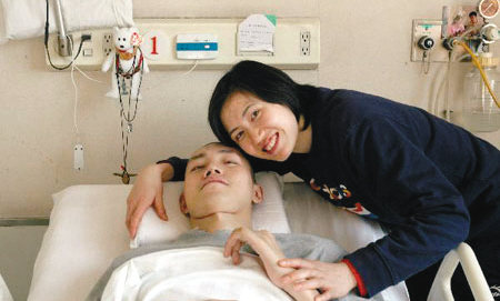 看到湯淼的情況一天比一天好,周蘇紅感到很知足,“湯淼能奇跡般地活下來(lái),我已經(jīng)很感謝老天了。從人生的最低谷往上走,才會(huì)真正明白什么是知足!敝芴K紅說(shuō),做賢妻的日子讓她感到很幸福,自從和湯淼相愛(ài),從來(lái)沒(méi)有在一起好好相守過(guò),現(xiàn)在能24小時(shí)在一起,感覺(jué)很好。湯淼說(shuō),自己欠妻子很多,唯一的回報(bào)就是加緊康復(fù)訓(xùn)練,恢復(fù)生活自理的能力。雖然他清楚奇跡不會(huì)馬上到來(lái),但他愿意用一生去努力,F(xiàn)在兩人常說(shuō)的一句話(huà)是:“我的快樂(lè)取決于你,你快樂(lè)所以我快樂(lè)。”