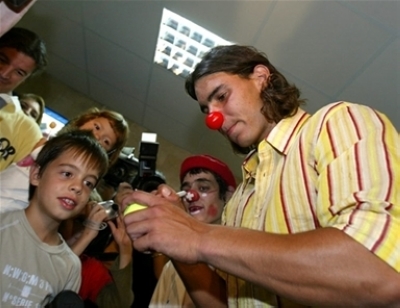一向熱心公益的納達(dá)爾,很喜歡與孩子們玩樂(lè)。四年前,納達(dá)爾就在馬洛卡杜雷塔醫(yī)院扮作小丑安慰受到病痛折磨的孩子們。西班牙RTVE電視臺(tái)稱,這是孩子們令人難忘的經(jīng)歷,“從他們驚訝的面部表情當(dāng)中就可以看出,對(duì)于世界第一的網(wǎng)球選手能親自來(lái)給他們講童話,是多么難以置信!逼鋵(shí),一向喜歡看動(dòng)畫、玩PS2游戲的納達(dá)爾在場(chǎng)外就是個(gè)長(zhǎng)不大的孩子。這個(gè)漫畫《七龍珠》的忠實(shí)擁躉,出外比賽旅行時(shí)也總帶著《七龍珠》的DVD,所以講起童話來(lái)也頭頭是道!捌鋵(shí)我不大會(huì)唱歌,相反為孩子們將故事是件不錯(cuò)的工作!奔{達(dá)爾坦言。