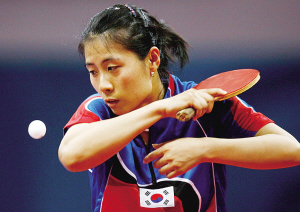 金暻娥是韓國著名女子乒乓球運(yùn)動(dòng)員,現(xiàn)世界排名第9位,擅長正手反膠、反手長膠的削球打法。在不具備絕對實(shí)力和領(lǐng)先技術(shù)的情況下,金暻娥之所以能夠在國際乒壇立足,主要依靠的是自己頑強(qiáng)的意志和反手長膠“牛皮糖”般的削球。黃德強(qiáng)