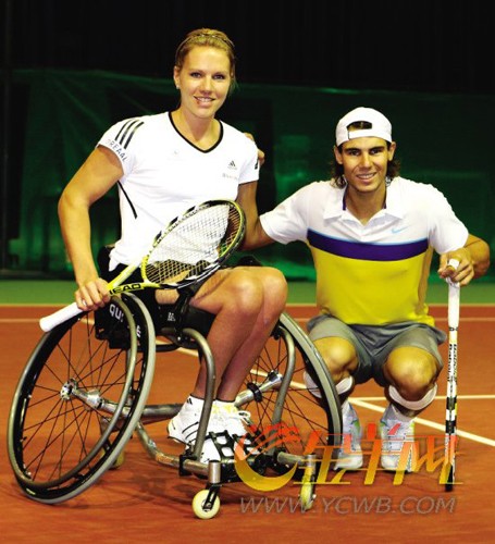 在荷蘭參加鹿特丹網(wǎng)球賽的納達爾日前抽空與與殘奧會輪椅網(wǎng)球冠軍維格爾一起練球,吸引了大量球迷現(xiàn)場觀戰(zhàn)。