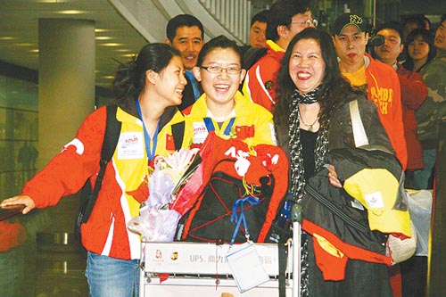 中國女子冰壺隊(duì)昨天在韓國奪得世錦賽冠軍的消息在國內(nèi)引起了轟動(dòng)。今天下午,當(dāng)她們從韓國飛抵北京首都機(jī)場后,數(shù)十名守候的記者把她們團(tuán)團(tuán)圍住,一向很少有人關(guān)注的中國冰壺姑娘面對(duì)大堆相機(jī)和話筒,感到受寵若驚,在賽場上以沉著冷靜著稱的隊(duì)長王冰玉,在這一刻也激動(dòng)得說不出話來。
