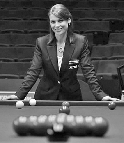 做斯諾克裁判前,塔布自己也是一位九球高手。高到什么程度呢?至少不會比中國的美女球手潘曉婷遜色。塔布曾以蘇格蘭九球隊(duì)隊(duì)長身份率隊(duì)奪得世錦賽冠軍。不過做裁判和自己打球是兩回事,尤其在與九球截然不同的斯諾克界,幾乎沒有出現(xiàn)過女性身影。要看清復(fù)雜的球路變化,記得障礙球前全盤的位置,觀察球員是否有細(xì)微的犯規(guī)行為,對斯諾克裁判來說,都不是一件容易的事。