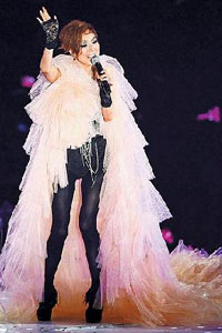 中新網(wǎng)7月5日電 據(jù)《聯(lián)合早報(bào)》消息,鄭秀文(Sammi)昨首度在臺(tái)北小巨蛋舉行個(gè)唱,花300萬(wàn)臺(tái)幣打造10套全新秀服,展現(xiàn)她的百變特色,其中最令人矚目的一款造型,是她穿另類(lèi)婚紗,高唱許志安(安仔)的代表作《上弦月》,還獨(dú)唱2人的專(zhuān)屬歌曲《惟獨(dú)你是不可取替》,大有向他喊話“快來(lái)娶我”之意,可惜安仔未到場(chǎng),無(wú)法與她父母、家人一起為她加油。