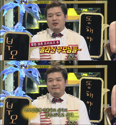 最后,神童還在節(jié)目中對女友求婚,他表示:“只要有你在身邊,我就感覺很幸福。能和我永遠幸福下去嗎?請嫁給我吧!”神童突然求婚,讓Super Junior其他成員都一臉驚訝。