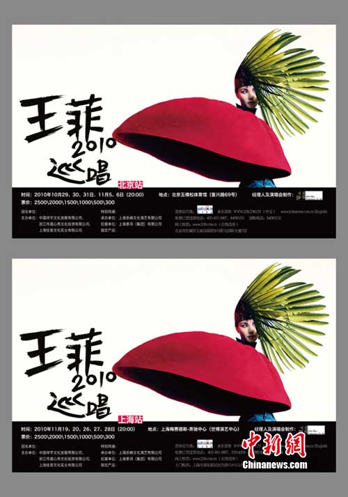 中新網(wǎng)7月9日電 王菲今年將在北京、上海兩地開十場(chǎng)演唱會(huì),今日,演唱會(huì)海報(bào)曝光,天后身穿羽毛裝,造型十分獨(dú)特。