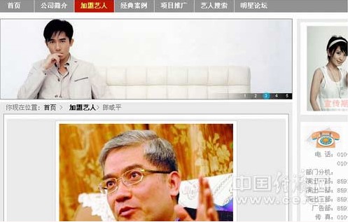 劉謙、梁朝偉、張曼玉、郎咸平這幾個名字你會想到什么?中國經(jīng)濟(jì)網(wǎng)記者今日在瀏覽某演藝經(jīng)紀(jì)網(wǎng)站發(fā)現(xiàn),平日里在媒體上以觀點獨到著稱、曾炮轟德隆系、痛斥國有企業(yè)MBO改革失敗、力推企業(yè)經(jīng)理人要講信托責(zé)任的香港中文大學(xué)教授郎咸平竟然出現(xiàn)在其中,與梁朝偉、劉謙、SHE組合等當(dāng)紅一樣也出現(xiàn)在“加盟藝人”之中。郎咸平教授曾在不同場合號稱自己要“上春晚”、“頂替趙本山”。難道真是邁出了這一步?