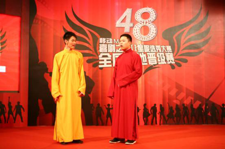 而記者在8月8日舉辦的移動(dòng)MM之《喜劇之王2》星呢選秀大賽48強(qiáng)晉級(jí)賽華北站的比賽現(xiàn)場(chǎng),意外的發(fā)現(xiàn)參賽的17位選手中17號(hào)的黃鶴飛竟然也是來(lái)自德云社的弟子。比賽中黃鶴飛的表演基本上都以相聲為主,只是比賽最后一個(gè)環(huán)節(jié)黃鶴飛以醒目的紅褲衩外穿的超人造型相聲表演讓評(píng)委很是不解。