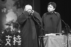 演出在當(dāng)晚7:30左右開場,郭德綱和于謙都身穿傳統(tǒng)長衫出場,笑容滿面,開場白是:“感謝在座的衣食父母!比珗稣坡曧懫。在當(dāng)晚演出中,郭德綱和于謙一共說了四段經(jīng)典作品,并且在觀眾一再要求下,返場了五次。郭德綱一向擅長拿真實(shí)事件“砸掛”。在返場中,郭德綱就用“保羅”和于謙父親串聯(lián)了起來,讓現(xiàn)場笑聲不止。除了郭德綱和于謙二人的表演,在近3小時(shí)的整場演出中,還有多名弟子上臺(tái)演出,但并無知名度較高的弟子出現(xiàn)。演出結(jié)束后,一群“綱絲”仍舊不愿離場,留在門口想與郭德綱合影簽名,并且打出橫幅支持郭德綱。面對(duì)觀眾如此熱情,郭德綱也是感慨道,“我能力有限,就會(huì)說個(gè)相聲,只要大家喜歡,我們就愿意給大家?guī)砜鞓。”?jù)了解,本場演出所有低票價(jià)已經(jīng)在一周之前全部售出,而最高門票也是所剩無幾。在離開場還有一個(gè)鐘頭的時(shí)候,黃牛黨都聚集在售票處,但并不是出售門票,而是收門票。當(dāng)記者向黃牛黨打聽票價(jià)時(shí),得到的回答只有“沒票,你有票賣嗎?”(王少文)
