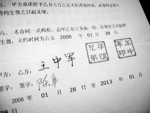 陳先生稱(chēng),2008年1月,小陳經(jīng)人介紹,與華誼兄弟音樂(lè)文化傳媒有限公司法定代表人王忠軍簽訂藝人簽約合同書(shū)。合同中約定,小陳可獲得一筆500萬(wàn)元的簽約金,并保證第一年全年的薪酬不低于500萬(wàn)元。但此后王忠軍找借口一直沒(méi)有支付,小陳也在錄了幾首歌曲后就沒(méi)有任何演藝活動(dòng)。王忠軍此后還出具了一份證明,約定將簽約金打給小陳的時(shí)間,同樣沒(méi)有兌現(xiàn)。在等待了兩年之后,小陳將王忠軍起訴到東城法院。