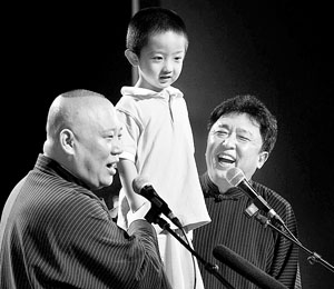 當晚的演出是在7點20分正式開始的,一開場,便是德云社的眾人齊亮相。而當晚,郭德綱和于謙到壓軸時才正式登場,表演了傳統(tǒng)相聲《賣布頭》。