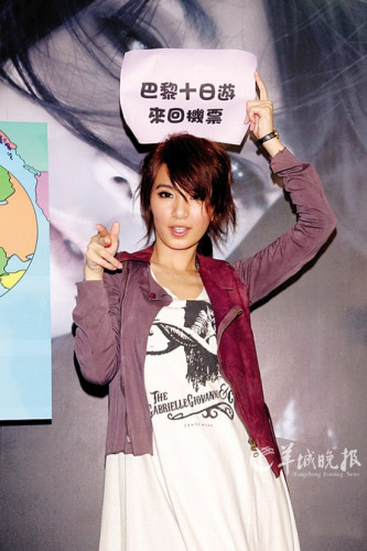 獨(dú)挑大梁唱完3場后,田馥甄高喊:“好爽,最想喝酒!”為了慰勞她,唱片公司讓她抽機(jī)票,結(jié)果她竟抽中當(dāng)中的“最大獎”巴黎商務(wù)艙來回機(jī)票。田馥甄興奮地說自己終于有了運(yùn)氣:“我以前買‘刮刮樂’都沒中過!北粏柕綍粫朐诿髂耆雵鹎勛罴褔Z女歌手獎項(xiàng)時,田馥甄說:“這應(yīng)該不是‘妄想’,我有信心!