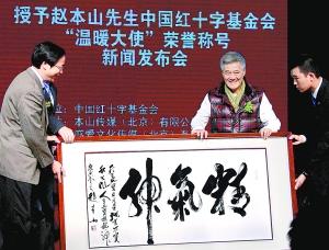 儀式現(xiàn)場,趙本山還向紅十字基金會捐贈了一幅自己的書法作品,雙方商定這件作品將于11月4日在“2010馬拉多納溫暖中國行”的慈善嘉年華晚會上進行拍賣,拍賣所得用于建立溫暖中國行動定點醫(yī)院和貧困腫瘤患者的救治。溫暖中國行動辦公室主任齊中祥向趙本山遞交了這場慈善嘉年華的邀請函,趙本山愉快地接受了邀請,并表示還將攜弟子現(xiàn)場奉獻精彩節(jié)目,屆時,“馬大帥”趙本山與另外一位“馬大帥”馬拉多納將相會于北京。記者金力維