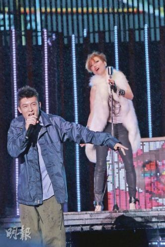 中新網(wǎng)10月25日電 陳冠希相隔兩年半再復出舞臺演唱,前晚在上海《東亞飛揚演唱會》獲得歌迷熱情支持,不斷有人叫他的名字,歡呼聲不絕。他在臺上演唱兩首新歌,分別與鄭秀文、黃秋生及農(nóng)夫合唱,不僅沒有怯場,而且表現(xiàn)投入。