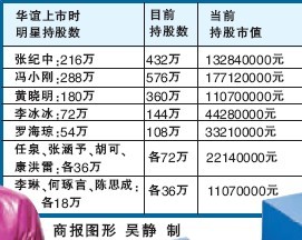 自從去年九月底華誼兄弟股票上市以來(lái),張紀(jì)中、馮小剛、黃曉明等眾多華誼明星的頭上又多了一個(gè)新的稱(chēng)謂:“華誼股東”。一夜之間,這些明星們的身家暴增,坐擁千萬(wàn)財(cái)富。