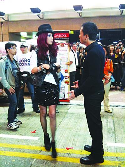 拍完空姐戲碼,休息片刻后,劇組再次轉(zhuǎn)場至銅鑼灣鬧市區(qū),迅速引起行人圍觀,而劉嘉玲換裝出場后出演的靚模也再度令人驚訝。劉嘉玲化著十分濃重的煙熏妝,身穿皮質(zhì)馬甲,搭配超短裙和黑色絲襪,而肩上挎的鉚釘背包和一頭火紅的長發(fā)朋克風格十足。劉嘉玲在微博自稱此次她的靚模造型“宇宙無敵”,與甄子丹演對手戲就是“宇宙無敵vs宇宙最強”,更有在場觀眾形容劉嘉玲當晚造型與霹靂嬌娃有一拼。據(jù)稱,甄子丹看過劇本后要求一定要“門當戶對”的女演員出演他的片中情侶,而劉嘉玲是他心中的最佳人選。而劉嘉玲過去也表示過,想看“好打的甄子丹演文戲”。兩人此次合作,可謂“終成眷屬”。據(jù)片場工作人員稱,劉嘉玲與甄子丹在劇組見面時表現(xiàn)得非常親切,甄子丹還笑言要幫梁朝偉看好老婆。
