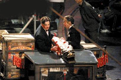 《木乃伊3》的故事來(lái)到戰(zhàn)亂的上海灘,秦朝的木乃伊將要復(fù)活,探險(xiǎn)家和軍閥幾乎同時(shí)而至。正在拍攝的有多場(chǎng)飛車戲,男主角布蘭登·弗雷澤也不例外,新科女主角艾佛林開(kāi)車,他則站在煙花車的車斗里,用“中國(guó)火箭”對(duì)瘋狂的“兵馬俑”部隊(duì)發(fā)動(dòng)襲擊,整條南京路都彌漫著硝煙味。