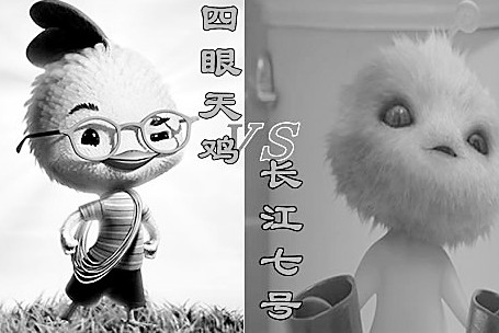 不能不提的是,盡管“長(zhǎng)江七號(hào)”是周星吃花了兩年時(shí)光打造的外星寵物,但這個(gè)外星主角還是太過(guò)類似于迪斯尼幾年前的“四眼天雞”,不禁令人懷疑是否又是港片抄襲陋習(xí)在作怪。
