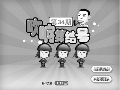 記者發(fā)現(xiàn),目前有數(shù)十萬網(wǎng)友參與過互動(dòng)惡搞《集結(jié)號(hào)》,其惡搞方式就是拿馮小剛開涮,游戲稱名導(dǎo)馮小剛攜年度大片《集結(jié)號(hào)》再戰(zhàn)內(nèi)地電影市場(chǎng),但當(dāng)今觀眾的欣賞水平越來越高,要求也越來越高,導(dǎo)演面臨的壓力很大。究竟《集結(jié)號(hào)》能否吹響,請(qǐng)你助他一臂之力。而游戲規(guī)則就是:點(diǎn)擊鼠標(biāo)左鍵擊斃沖上陣地的群眾演員,同時(shí)注意不要打中摻雜在其中的明星演員。如果讓敵人沖上陣地或是誤殺一定數(shù)量的明星演員游戲即失敗,參與者的任務(wù)就是,請(qǐng)堅(jiān)守陣地直至集結(jié)號(hào)吹響。