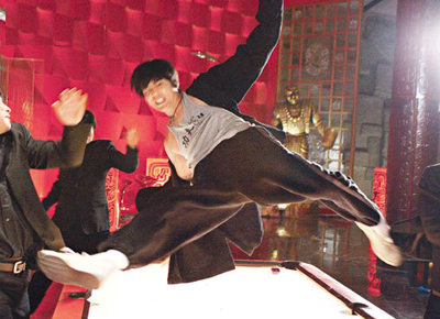 中新網(wǎng)1月16日電 周杰倫在新片《大灌籃》中,單獨(dú)與80名壯漢惡拚連場,一幕凌空飛腿后落地?cái)[出金雞獨(dú)立姿勢的場面,連動(dòng)作導(dǎo)演程小東也不禁大贊。