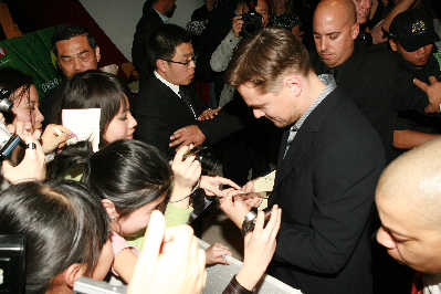 昨日上午的記者會更像是萊昂納多的影迷見面會。熱情的粉絲早早包圍了發(fā)布會現(xiàn)場,高聲尖叫萊昂納多的名字。原本安排上臺簡短發(fā)言,但萊昂納多的聲音每每被粉絲的尖叫聲兔弧2還馕緩美澄朊饜遣⒚灰虼碩腥魏尾宦炊嗟鼻濁械馗懊源蛘瀉簦骸癏i!”發(fā)布會結(jié)束后,萊昂納多還主動走到粉絲居多的地方,與他們握手簽名。