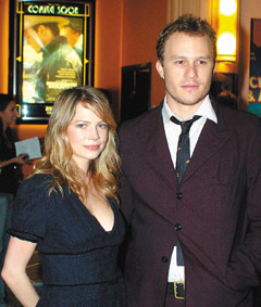 希斯萊杰(右)死后,盛傳同居女友米歇爾威廉絲和他父母不和。