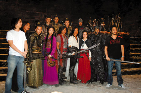 昨天,香港導(dǎo)演彭氏兄弟率領(lǐng)郭富城、鄭伊健、阿Sa、任達(dá)華、謝霆鋒、何家勁、唐嫣等電影《風(fēng)云2》的主要演員,在拍攝地泰國曼谷與來自內(nèi)地、香港、臺(tái)灣以及新加坡、馬來西亞等地的記者見面。在溫度高達(dá)40度的攝影棚里,明星們個(gè)個(gè)鎧甲披身,熱得汗流浹背,苦不堪言。