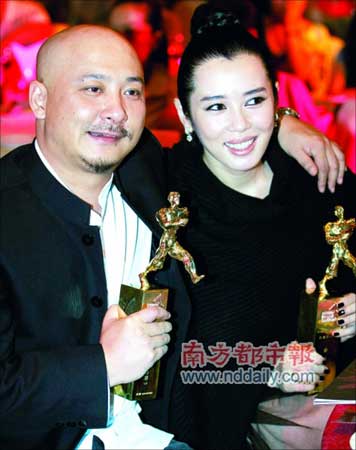 在領(lǐng)過(guò)最佳影片獎(jiǎng)下臺(tái)后,媒體要求王全安捧杯留影時(shí),他并沒(méi)有忘記坐在身邊的余男,右手拿著獎(jiǎng)杯,左手自然地搭在余男的肩上,兩人淡定愉悅的面對(duì)閃爍的鏡頭。